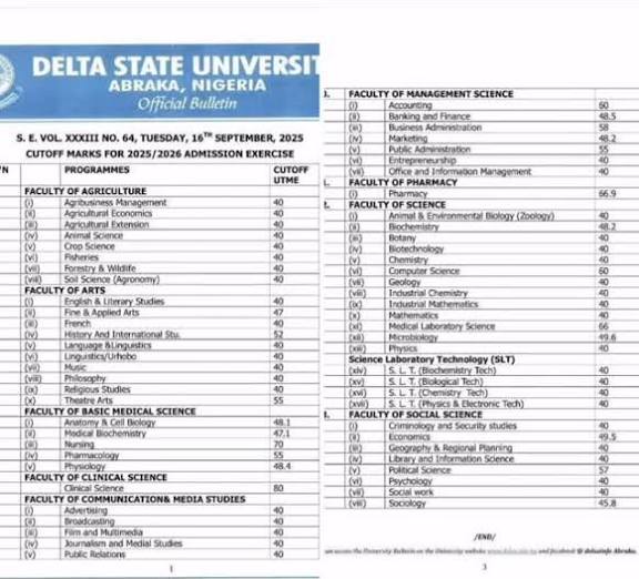 The Delta State University (DELSU) Direct Entry cut-off marks for 2025/2026 provide a clear picture of how competitive each program is. Prospective candidates are advised to verify all details on the official DELSU website and ensure they meet the minimum requirements before applying.