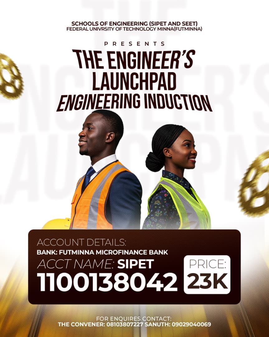The Schools of Engineering at the Federal University of Technology, Minna (SIPET and SEET) have officially opened registration for the 2025 Engineering Induction Ceremony, a landmark event that formally ushers graduating engineering students into the professional domain of the Nigerian Society of Engineers and the Council for the Regulation of Engineering in Nigeria. The ceremony, themed The Engineer’s Launchpad, stands as one of the most defining milestones for every FUTMINNA engineering graduate.