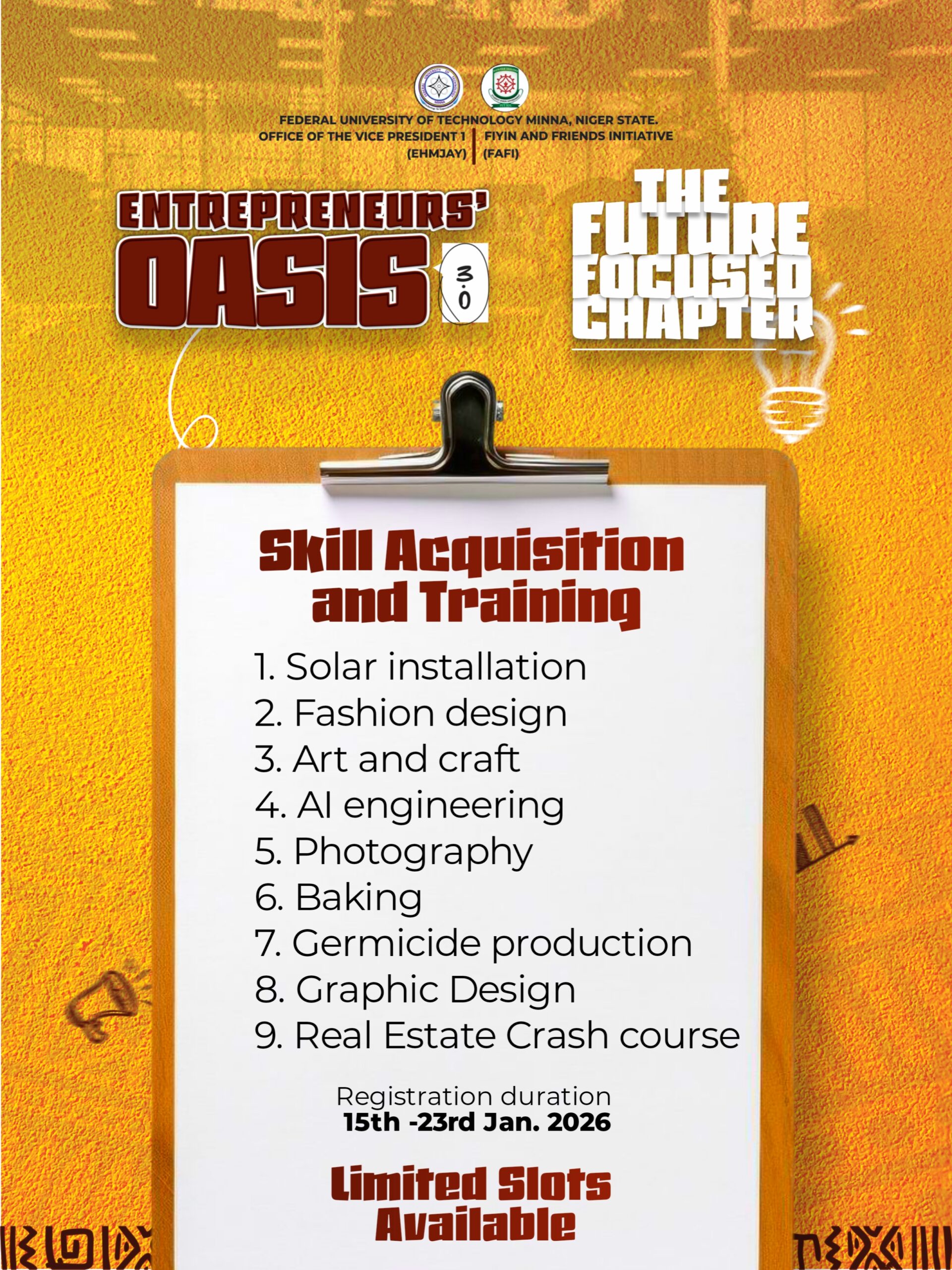 #EntrepreneursOasis3 #SkillAcquisition #FutureFocused #YouthEmpowerment #LearnAndEarn #FUTMinna