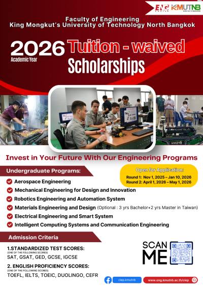 The prestigious King Mongkut’s University of Technology North Bangkok (KMUTNB) in Thailand is opening its doors to outstanding international applicants with its 2026 Undergraduate Scholarships — offering a full tuition fee waiver for selected engineering and technology programmes.
