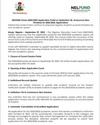 The closure of the NELFUND 2024/2025 application marks the beginning of a transition into a new academic cycle. Students are advised to pay close attention to the deadlines, ensure their institutions verify their applications, and prepare early for the 2025/2026 cycle.