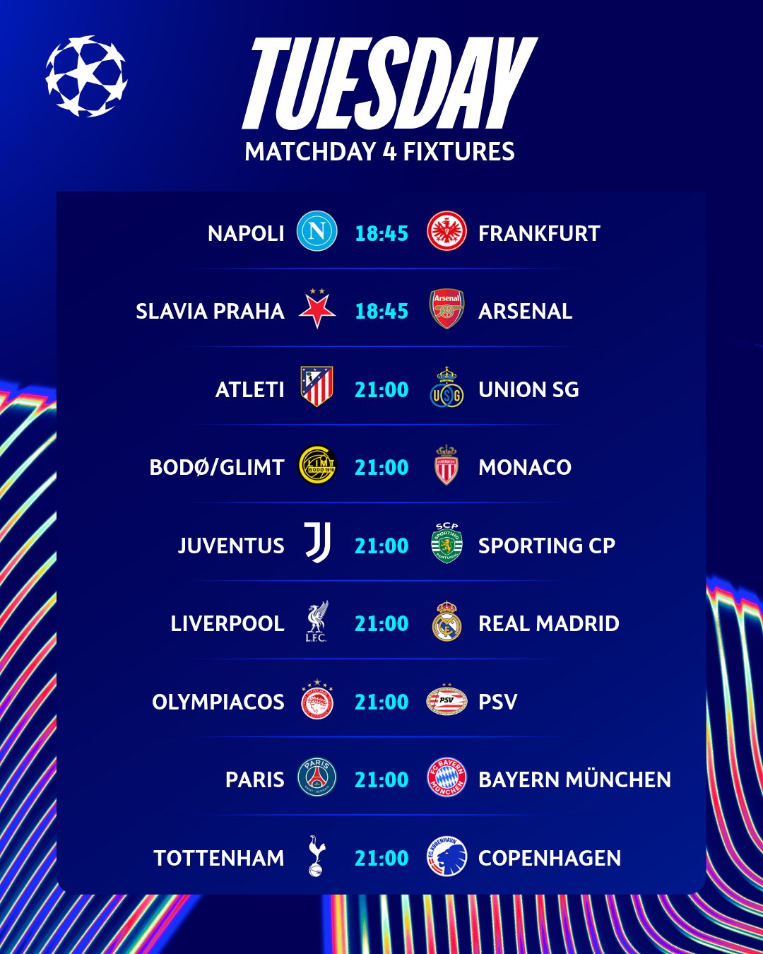 Stay tuned for live updates, results, and post-match analysis as Matchday 4 unfolds — because this is where champions are made.