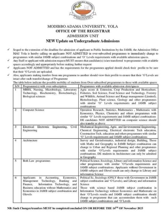 The University further emphasized that there will be no extension of the deadline, warning that any candidate who fails to complete payment within the stipulated period risks forfeiting their admission offer.