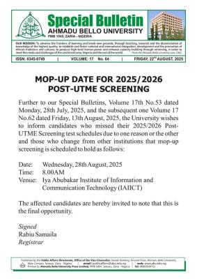 ABU Releases Special Resit Exam Timetable for 2024/2025 Academic Session